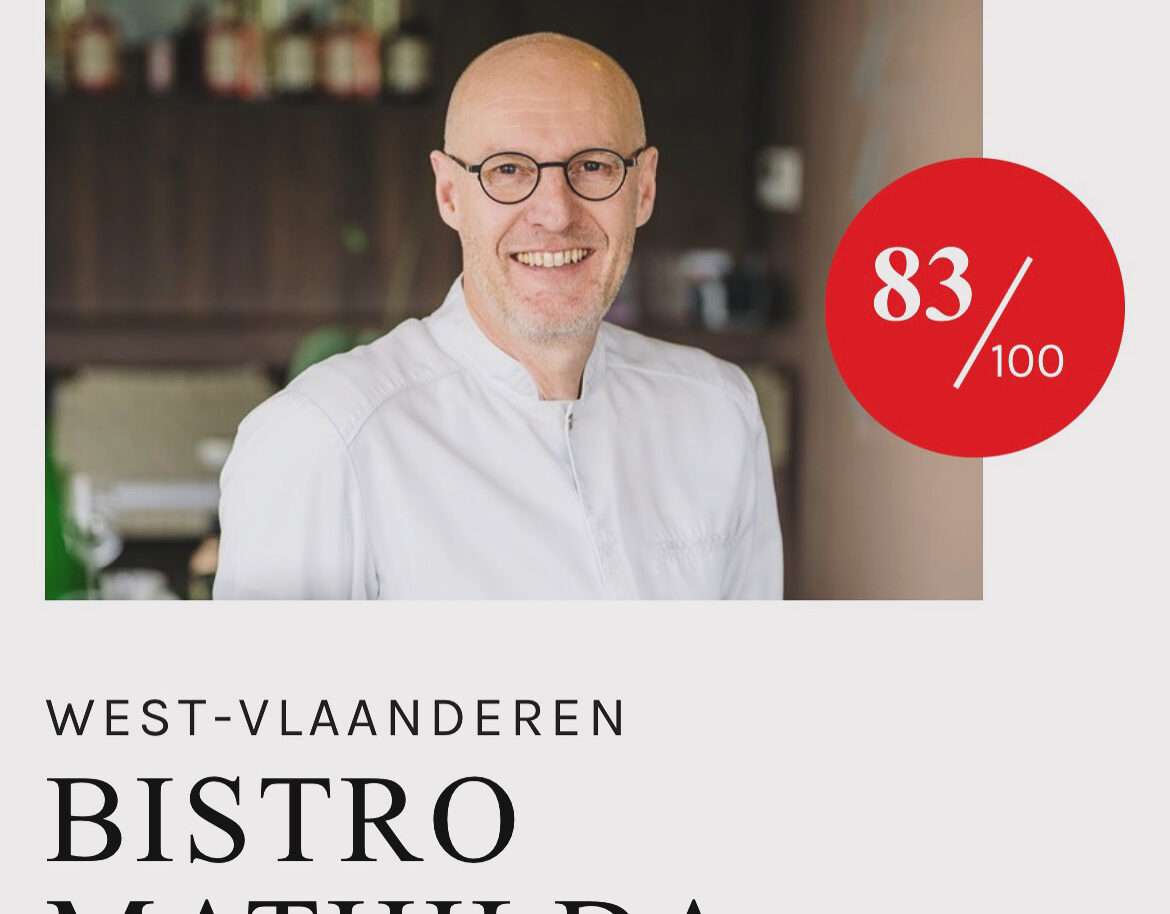 Bistro Mathilda weet te charmeren zonder tierlantijnen. Ongedwongen bediening met een klassiek geïnspireerde keuken, zonder stoffig te worden. Alles straalt een oprechte liefde voor het vak uit. Hier kom je niet voor spektakel, maar voor kwalitatieve degelijke gerechten met respect voor het product met een vleug nostalgie. Een aanrader voor wie houdt van eerlijke bistronomie, gebracht met zorg zonder pretentie. Chef Luc Deklerck ontvangt binnenkort dan ook terecht het Ere-Ambassadeurschap Vlaams Culinair Erfgoed.